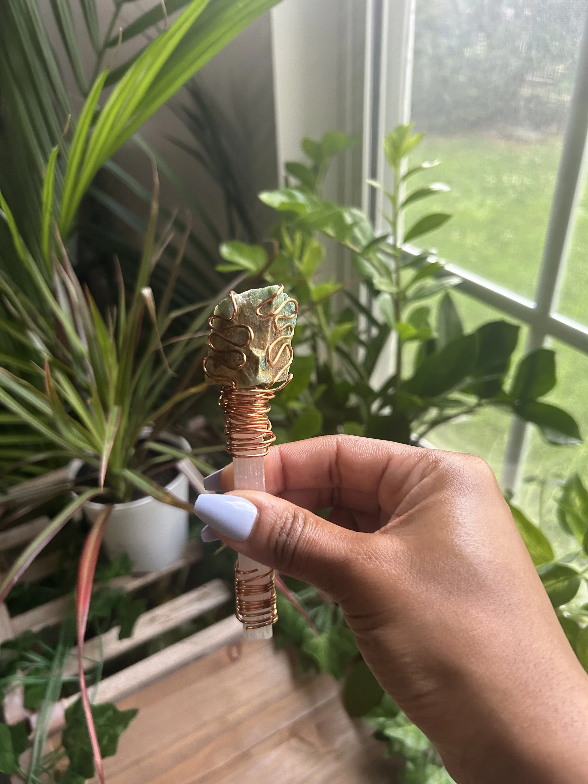 Categories: All Crystals Selenite Wands Candles Sages & Palo Santo Incense Spiritual Waters & Cleansing Soap All | Crystals | Selenite Wands | Candles | Sages & Palo Santo | Incense | Spiritual Waters & Cleansing Soap | Amethyst Crystal Chunks $10.00 Clear Quartz Crystals $4.00 Selenite Towers $10.00 Blue Calcite Crystals $4.00 Green Calcite Crystal Chunks $5.00 Orange Calcite Crystals $4.00 Florida Water Soap $5.00 Florida Water $10.00 Success $8.00 Money Drawing $8.00 Love Drawing $8.00 Health $8.00 Go Away Evil $8.00 Lucky $8.00 Better Business $8.00 Chakra Candle $8.00 Selenite Sticks $5.00 Custom Copper Wrapped Amazonite Reiki Wand $25.00 Custom Selenite, Green Calcite, & Clear Quartz Reiki Wand $30.00 Custom Selenite & Orange Calcite Wand $25.00 Palo Santo $3.00 Bay Leaf Sage Smudge $3.00 Chakra Sage Smudge $3.00 White Sage Smudge $8.00 Against Jealousy $4.00 Attracts Money Incense $4.00 Divine Healing $4.00 Goddess Incense $4.00 Love & Sex Incense $4.00 Meditation Incense $4.00 Money Drawing Incense $4.00 The Moon Incense $4.00 Protection $4.00 The Sun Incense $4.00 Divine Blessings Incense $4.00 Fairy Dreams Aromatic Incense Sticks $4.00 Honey Calcite Crystals $3.00 Selenite Heart Crystals $5.00